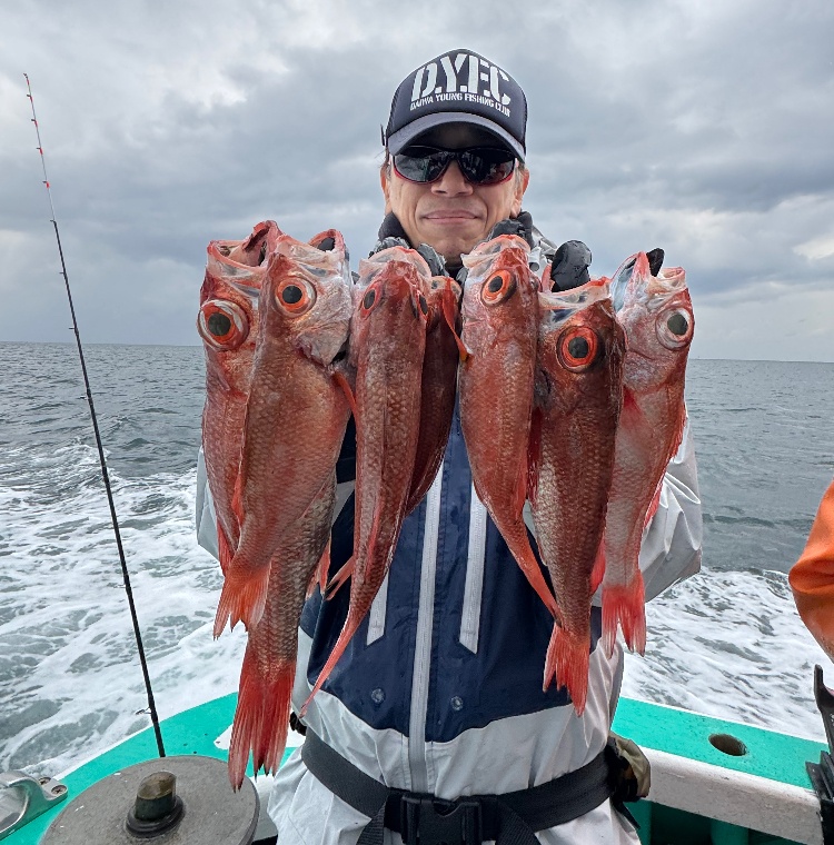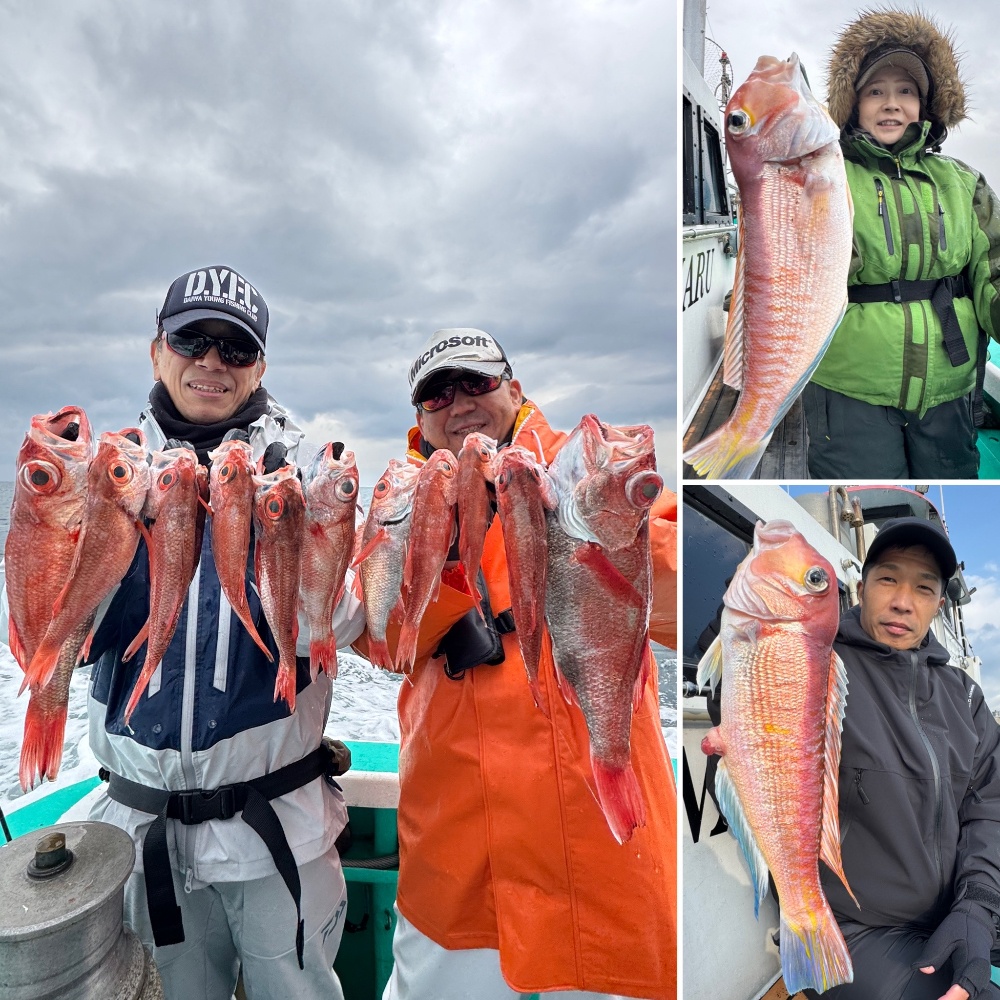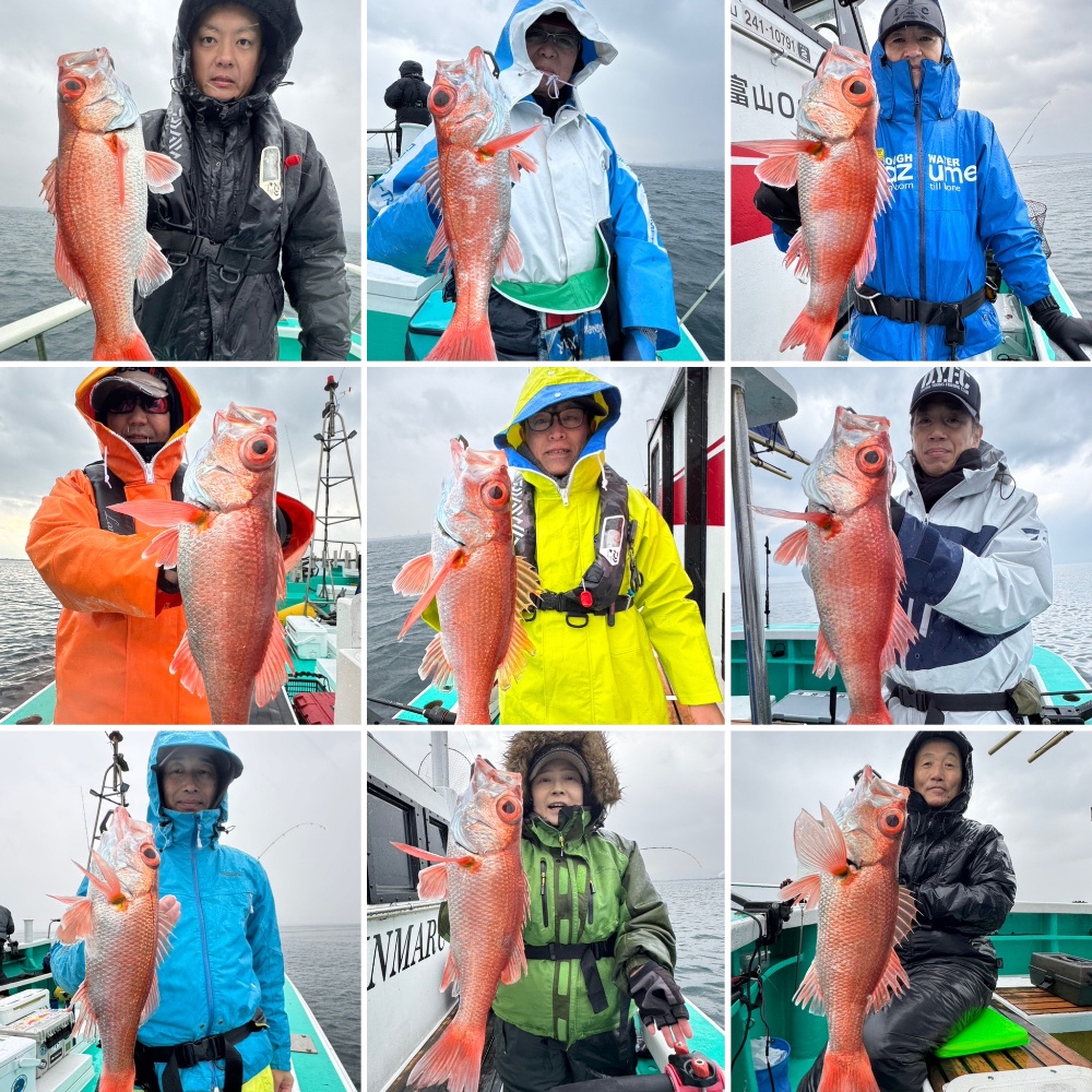 今日のアカムツは、前半大大大苦戦💦ゲストにでさえ嫌われ、シトシトと雨の降る中沈黙モード😥寒い😭しかし中盤以降はアタリも出始めこれが最後まで⭐️しかも今日はキロUPが2本飛び出し超興奮‼️他にもキロ手前サイズがチラホラ上がりお客さんもヤル気MAX😤前半どうなるかと思われましたが、最後の最後まで集中した釣行になりました⭐️皆さんお見事です!本日のご乗船誠にありがとうございましたm(__)m ⭐️竿頭さん⭐️