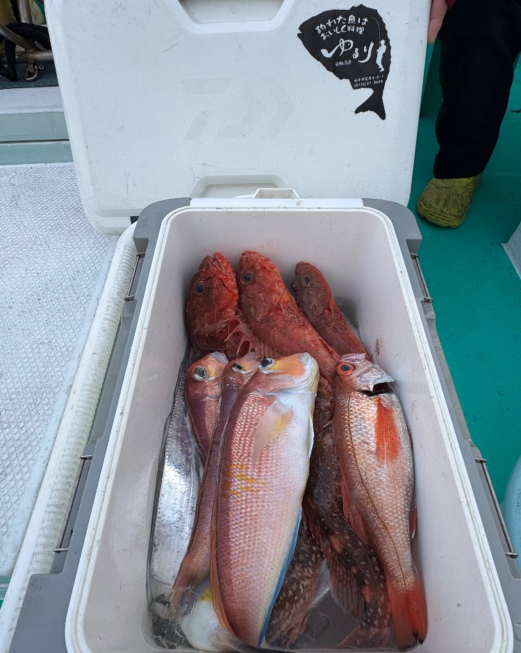 まずはアカムツ!今日のアカムツは、よくも無く悪くも無く、サイズもバラバラ。ゲストはあまり遊んでくれませんでした😅中盤からの甘鯛は、そんなに活性も悪くは無くコンスタントに釣れていました⭐️ナイスサイズの鬼カサゴもボチボチ上がり、最後まで楽しい釣行になりました🤗本日のご乗船誠にありがとうございましたm(__)m