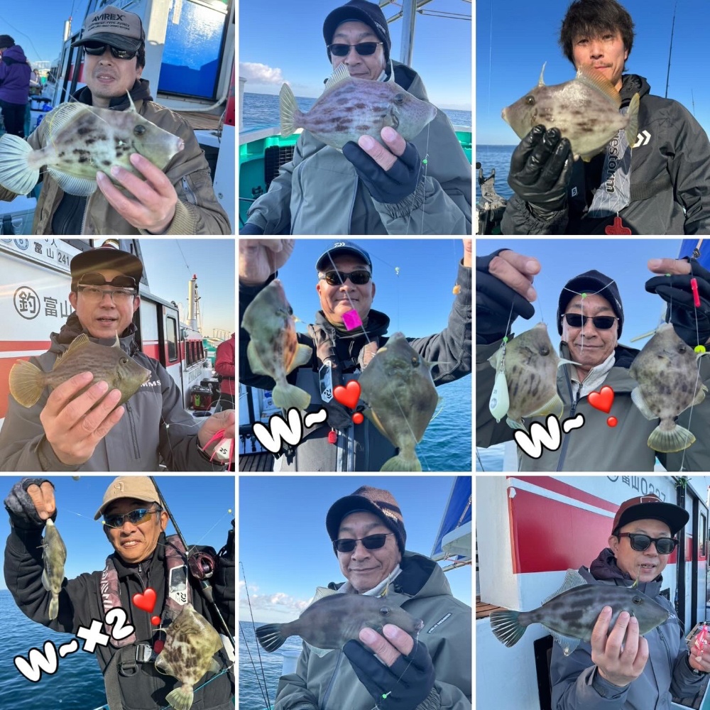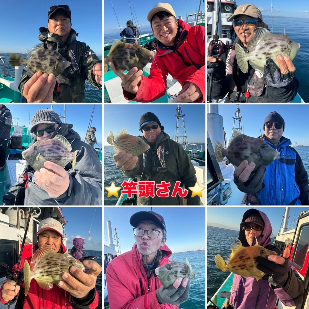 今日のカワハギはお寝坊さんだったのかスロースタート😅釣れてはいましたが、コツコツと釣果を伸ばす感じ🤔しかし中盤過ぎたあたりからようやくカワハギもお客様も覚醒し😆次から次に本命本命本命〜⭐️ダブルダブルダブル〜❣️面白かったぁ🤗肝パンでそこそこナイスサイズが多数❗️うらやましぃ〜🤤前半から高活性だったらもっと派手だったねぇ〜🤔なんてちょと欲の出た釣行になりました。本日のご乗船誠にありがとうございましたm(__)m