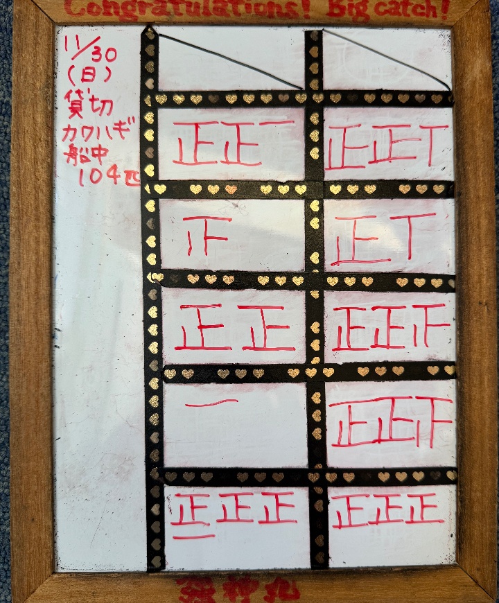 本日は極鋭カワハギ友の会の皆さんでの貸切便⭐️食いが浅くなかなかテクニカルな釣りになりましたが、一日通してコンスタントに上がっていました❗️さすがです👍楽しい釣行になりました🤗本日のご乗船誠にありがとうございましたm(__)m