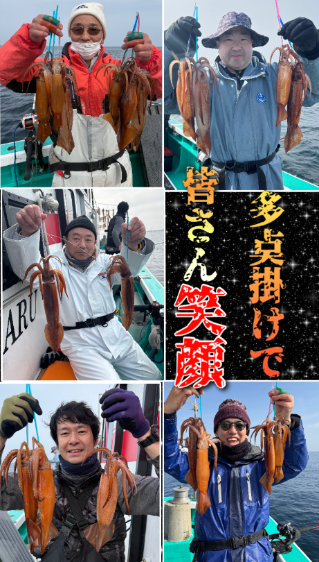 今日は朝から釣れてはいましたが、大きな浮いた反応が少なく、なかなか多点掛けに苦戦されてました😅と言ったものの、1~3杯は皆さんコンスタントに乗せておられ、チャンスタイムには3~6杯👍お見事でした⭐️一日通して多点爆乗りに少し欠けてはいましたが、皆さんそれぞれ試行錯誤しながら楽しんでおられました😁爆乗りは次回にお預けですね😌本日のご乗船誠にありがとうございましたm(__)m