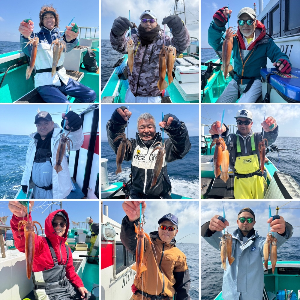 今日のスルメイカは一日通して盛り上がりに欠けた(多点掛け)日になってしまいました😩活性が悪くお触りのみか、どうかすればお触りもナシ😔乗せるだけでも必死‼️乗っても外れる😮💨そんな状況が最後まで続き、大変苦戦した釣行になってしまいました。ごめんなさい🙏本日のご乗船誠にありがとうございましたm(__)m ⭐️竿頭さん⭐️
