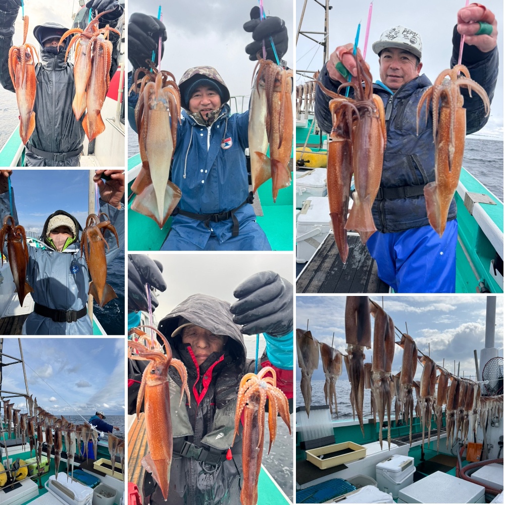 今日は釣れてはいましたが、盛り上がりが今一つ💦やはりスルメイカの醍醐味は多点で乗ってズシッと重い竿先ぐにゅ〜❣️今日はコレがなかったくらい難しかった😓それでも皆さん乗れば多点を狙うお姿は勇ましかったです!そして楽しそう🤗早上がりになりましたが、次に繋がる釣行になりました。本日のご乗船誠にありがとうございましたm(__)m