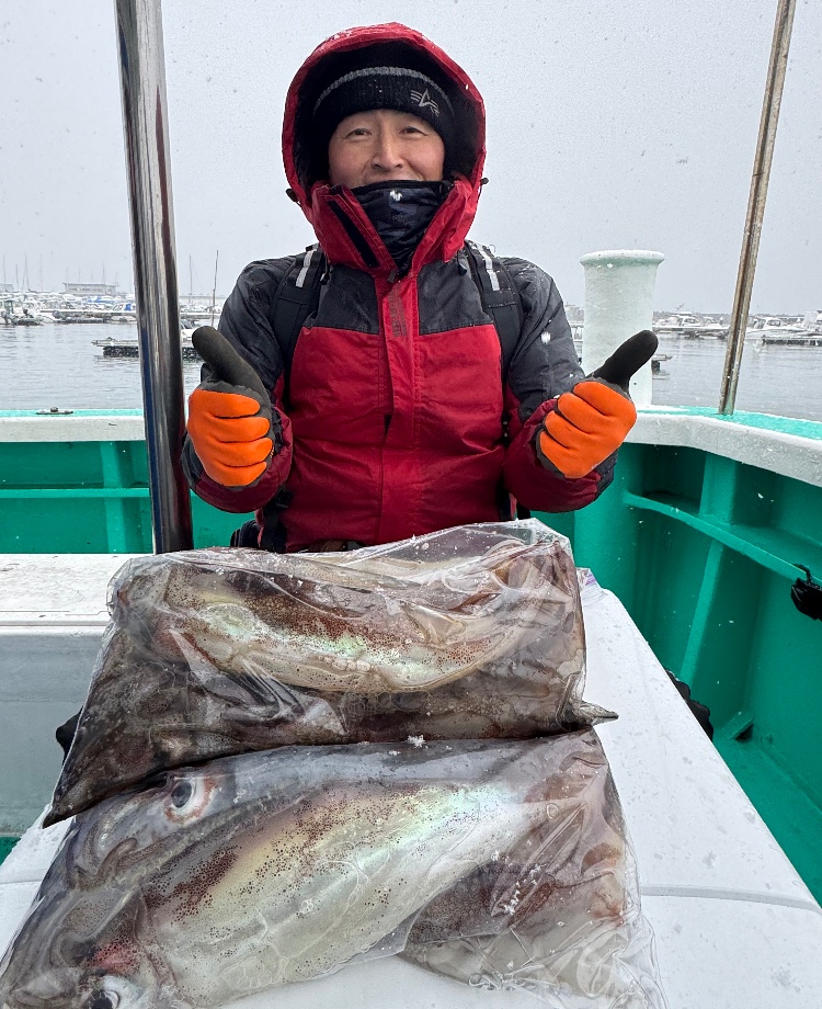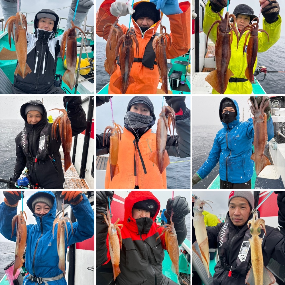 今日のスルメイカは、やはり底に張り付きなかなか浮いて来ない状況😮💨チャンスタイムに一時フワッと浮いて来る事もありましたが、ほとんどが底ベタに🤔とはいえ釣れてない訳ではなく多点掛けが難しく単発が多々😅多点が少ない分数は伸びませんでしたが、お土産分はバッチリ確保されてました👍お見事です🤗本日のご乗船誠にありがとうございましたm(__)m ⭐️竿頭さん⭐️