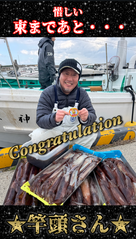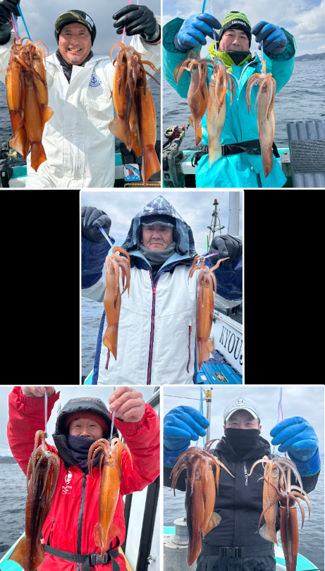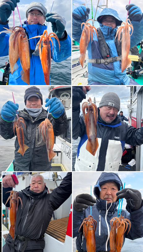 今日は、中盤くらいまでは多点掛けに苦戦しながらも着々と数を稼ぎ、単発が多い割には前日よりはいい感じ👍その後ちょっとだけ沈黙タイムがありましたが、チャンスタイムは突然やって来る‼️バゴォーンと反応が現れたと思ったら、イカのヤル気もMAX✨ノリノリタイム突入⭐️多点掛けもバッチリ決めて船上皆さんのヤル気もMAX✨楽しかったぁ😆チャンスをモノにされた皆さんお見事でした👏2日間頑張ってくださりクタクタになった釣行になりました♪♪本日のご乗船誠にありがとうございましたm(__)m