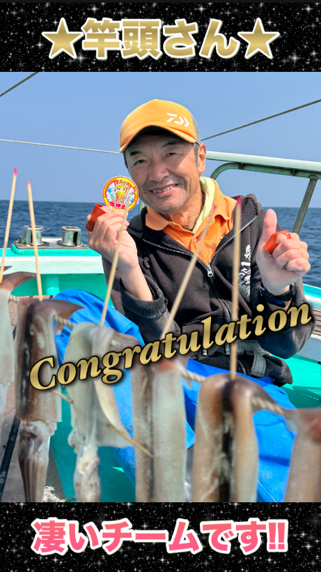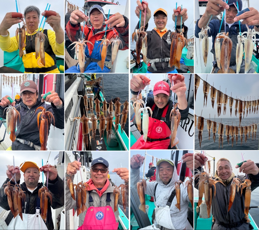 それでもチーム福本丸の皆さんは、あ〜触った!あ〜バレた!ちきしょう触ったのに乗らね〜!などテクニカルで難しい今日のスルメイカを楽しみながら釣果を量産⭐️素晴らしい👍船上干しはそこそこに、麦イカは生でお持ち帰りされるとの事でした😌煮物用に配るそうです🤤